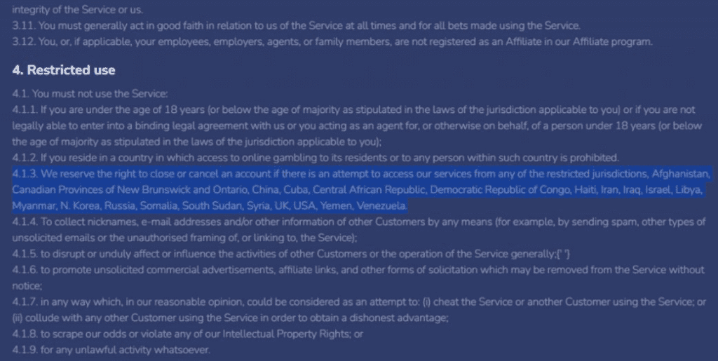 Well, first up, the biggest red flag of all – based in Costa Rica and operating under a Tobique license. Really, to appreciate how farcical this is, just go and check out Tobique on Google Earth. It’s a tiny rural Canadian First Nation community of a couple of thousand people – it’s not a country, it doesn’t have any experience in regulating online gaming, and it has literally no oversight powers to speak of. Like Anjouan, it’s nothing but a licensing jurisdiction of convenience for operators who don’t want to meet the new Curaçao standards. Also like Anjouan, the license prohibits players from many markets, including the US and UK, giving the operator the ability to spring the good old KYC trap.