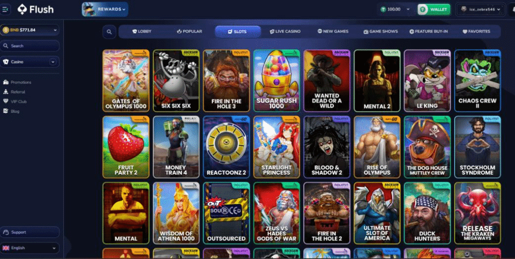 Despite having a page all about provably fair games, Flush crypto casino doesn’t actually appear to offer any. You won’t find any of the specialist provably fair providers like Spribe, Turbo Games, or InOut here, and there aren’t any provably fair Flush originals either.