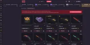 500 Casino also has a marketplace for Counter-Strike items. To buy, sell, and trade skins and in-game items, you need to connect your Steam account. You can also gamble by buying “Cases” – which are loot boxes for CS2, containing various items – and even participate in “Case Battles.”