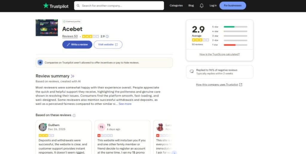 /div>Because Acebet is a relatively new crypto gambling platform, its reputation is difficult to assess. However, it was rated at Trustpilot and Correct Casinos.