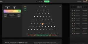 The simple Japanese classic. Select your risk level and the number of rows, then make a bet and hope the ball bounces its way to a good multiplier. Maximum payout is stated as x1,100 with an RTP of 97% (house edge 3%).