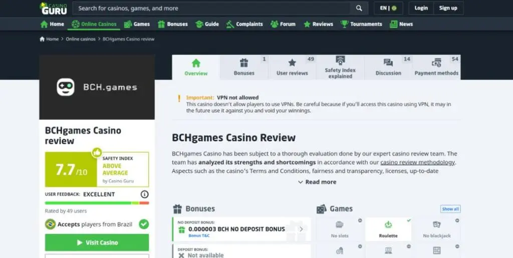 Despite the fact that BCHgames is an anonymous, decentralized crypto casino, it expressly prohibits the use of VPNs and says it won’t accept players from the United States, Curaçao, Syrian Arab Republic, Islamic Republic Of Iran, The Democratic People’s Republic of Korea, Australia, Netherlands or France.