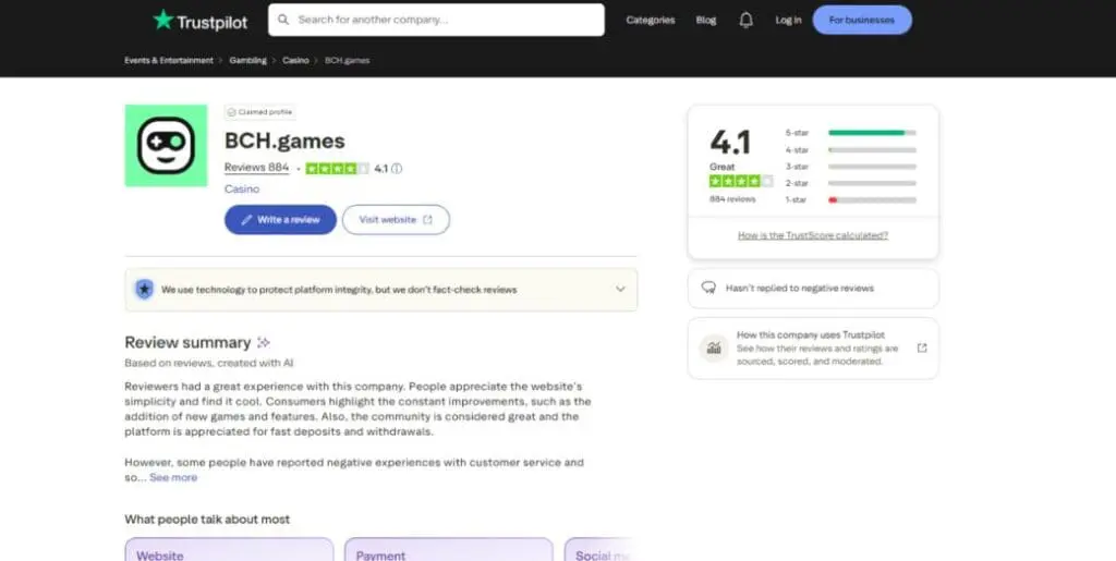 So, that’s my review of BCH.Games, but what do real players out there in the wild think of this crypto casino? Well, here are some ratings from a couple of popular casino review platforms: