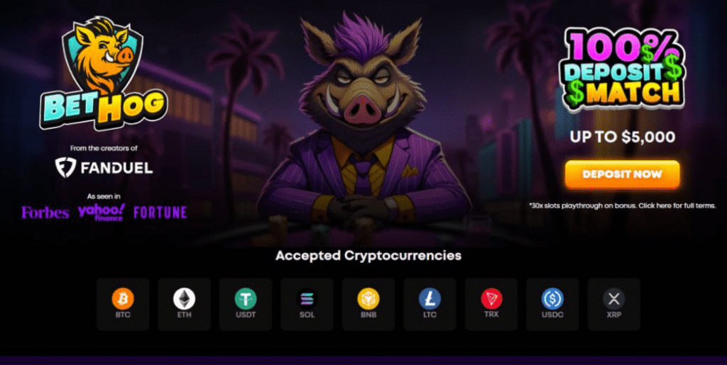 Launched in late 2024, Bethog.com is a crypto casino from the creators of US sports and fantasy sports betting giant FanDuel. It offers thousands of slots, table, and live casino games, along with a selection of provably fair originals. In keeping with its FanDuel heritage, it also boasts a sportsbook.