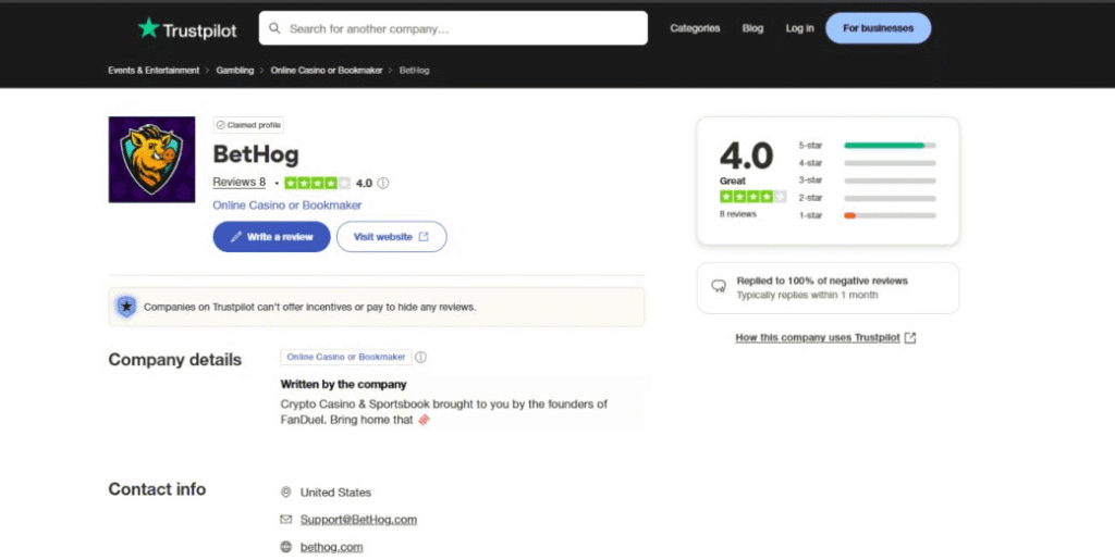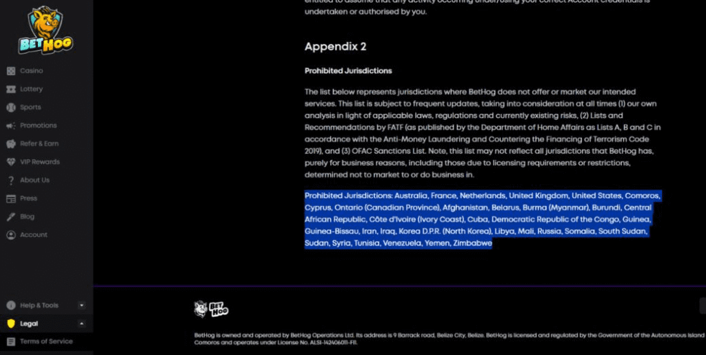 Warning: Opening a player account with BetHog crypto casino is KYC free, but due to its Anjouan license, players in many countries, including the United States and United Kingdom, are prohibited.
