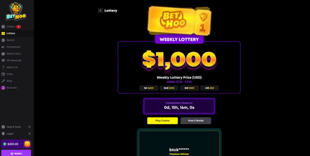 $1,000 Weekly Lottery – Earn lottery tickets by wagering. 1XP = 1 lottery ticket. Draws are live streamed on Fridays at 6PM ET (see the loyalty program for how XP is calculated).