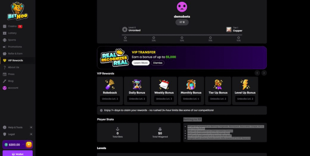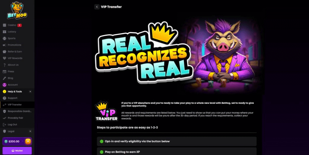 Interestingly, BetHog is also offering VIP transfer for players who meet certain requirements.