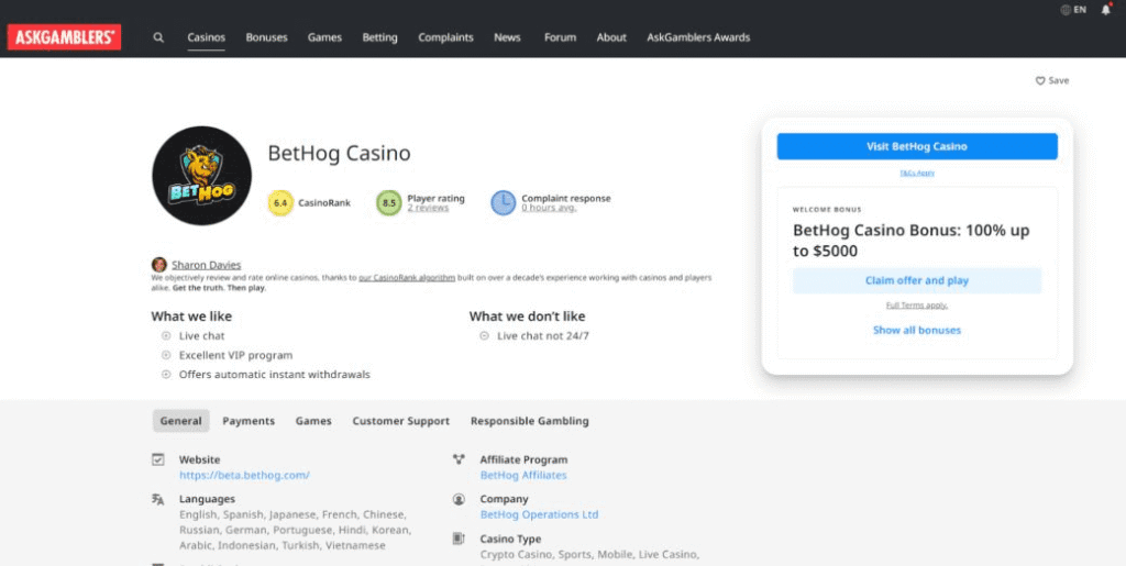 In this original CoinBets review of BetHog, I’ll be signing up, wagering real crypto, examining the welcome bonus and VIP rewards, and checking out crypto payment options. So, is BetHog the next big player in the crypto gambling space, or just another offshore casino telling porkies? Let’s find out.
