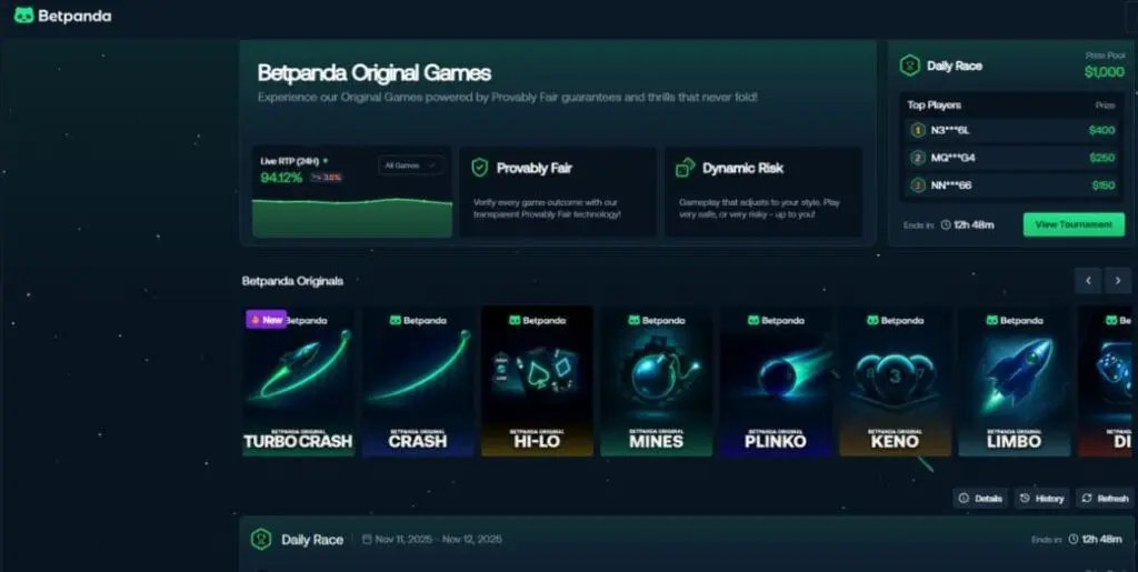 Since 2023, BetPanda has marketed itself as a KYC-free, VPN-friendly crypto casino for players who want to gamble anonymously. It offers thousands of slots, table, and live casino games, plus sports betting.