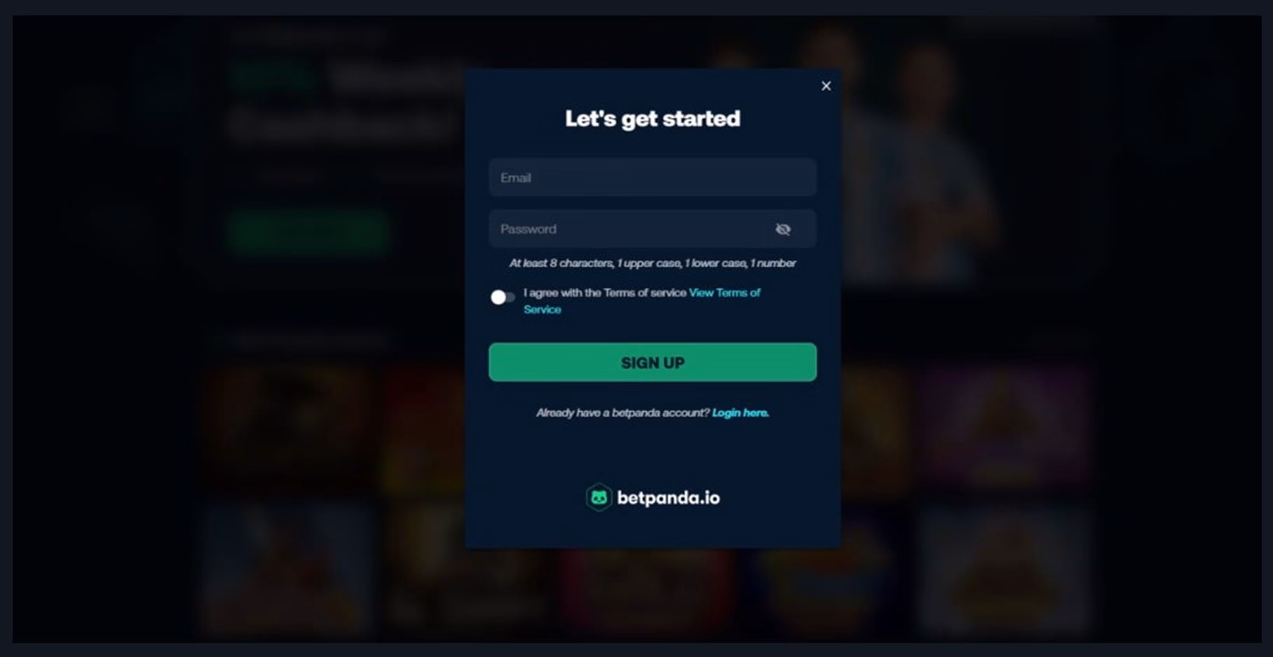 Opening an account with BetPanda is extremely easy, although there are no options to log in using a third-party service like Google, Telegram, or MetaMask.