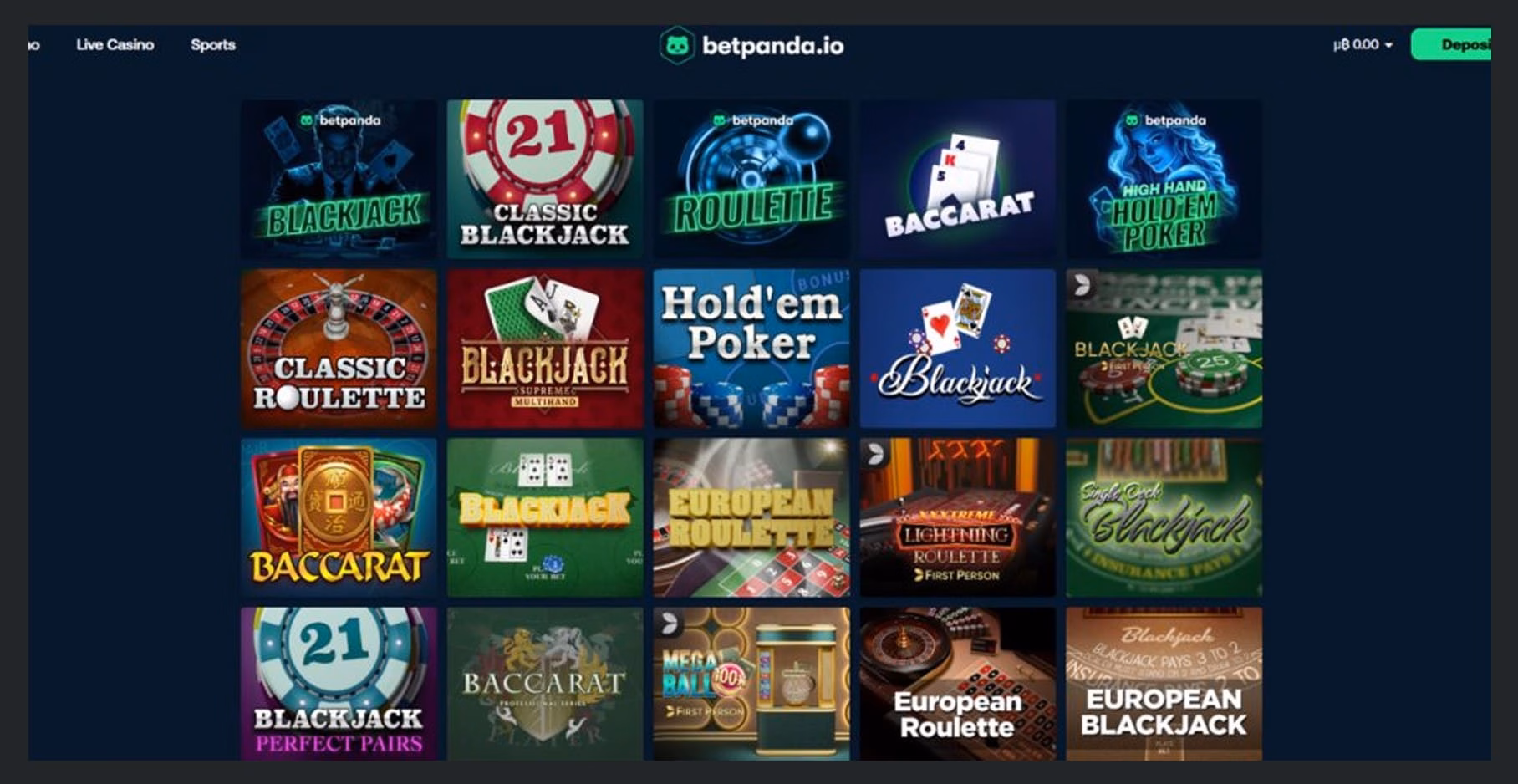 There’s no main category visible for table games at BetPanda, but if you click on “Features” and scroll to the bottom, you’ll find “Table Games.” And, with over 200 table games and video poker titles available, the choice is pretty solid.