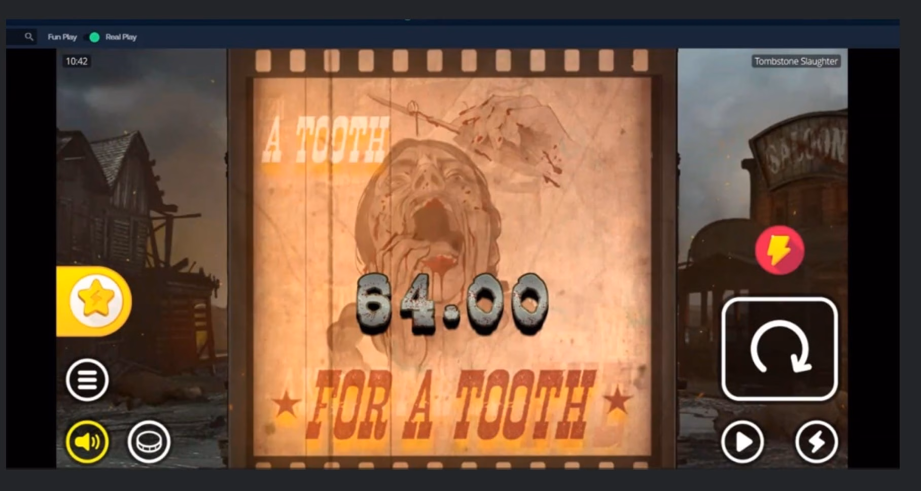 So, to find out if BetPanda slots are legit, I decided to test 100 free play spins vs 100 real money spins to see what RTP I really experienced. For this test, I selected one of the latest Nolimit City releases, Tombstone Slaughter – a gritty Western slot rated as extremely volatile and boasting an official RTP of 96.01%.