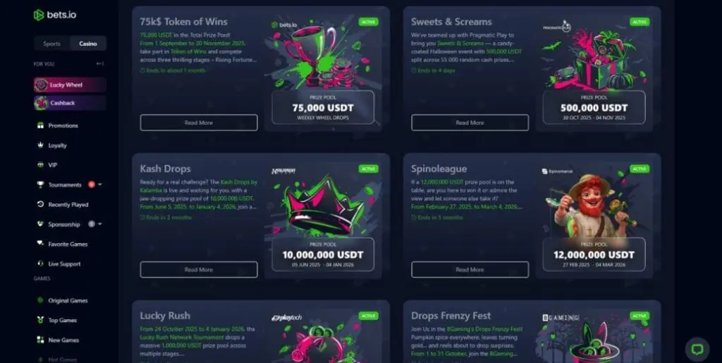 Bets.io burst onto the crypto gambling scene in 2021, branding itself as the “Easy Way to the Moon.” Since then, it has developed a massive platform featuring over 10,000 casino games, sports and esports betting, and even a crypto-powered lottery. The site recently gained extra visibility through a sponsorship with UFC fighter Michael ‘Venom’ Page and has become especially popular among players in Latin America.