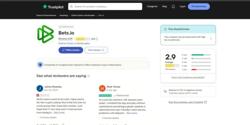 Ooookay, are you sitting comfortably? Let’s tackle Bets’s reputation. First, let’s check the platform’s ratings on a few popular casino review sites: