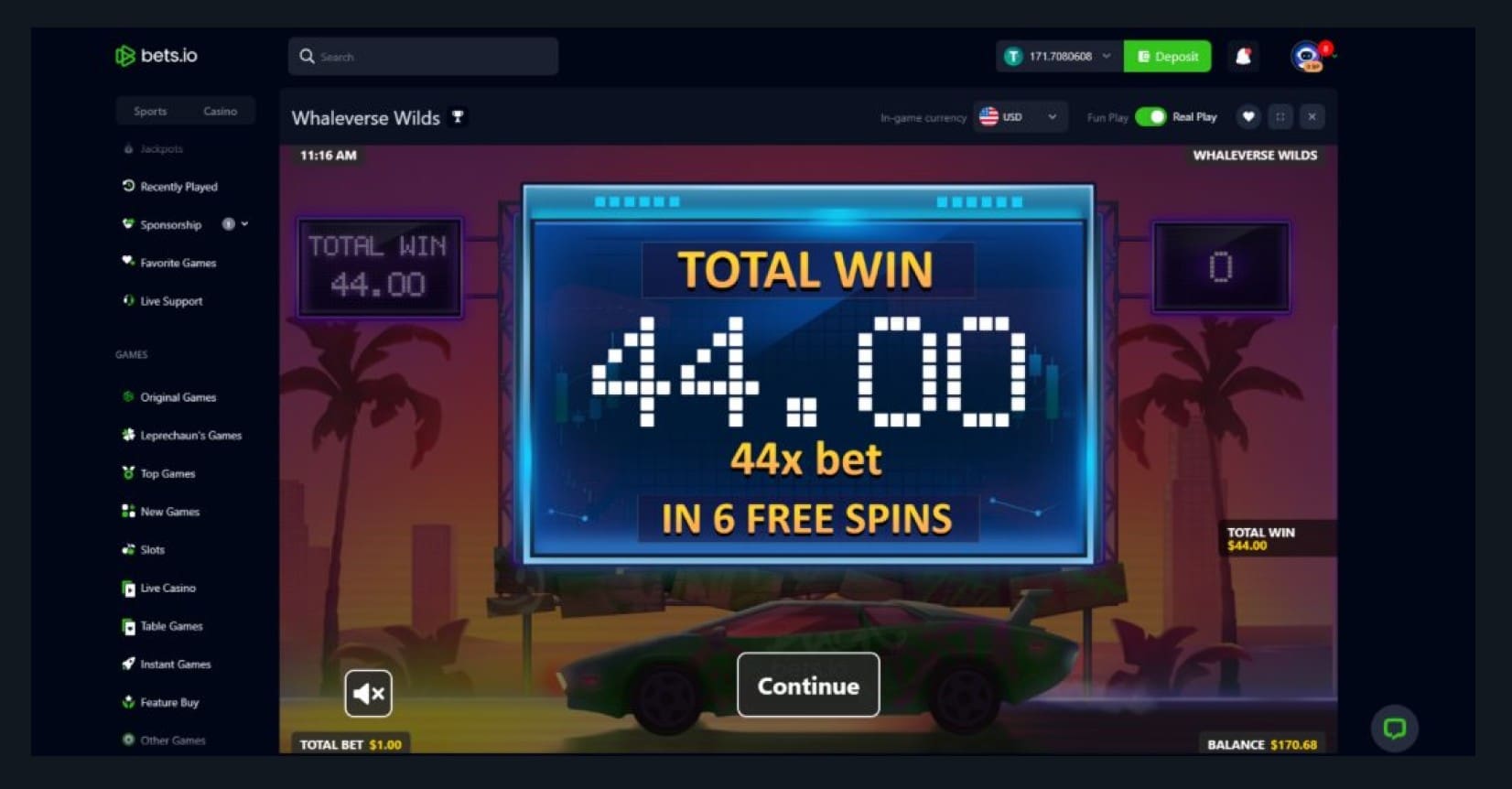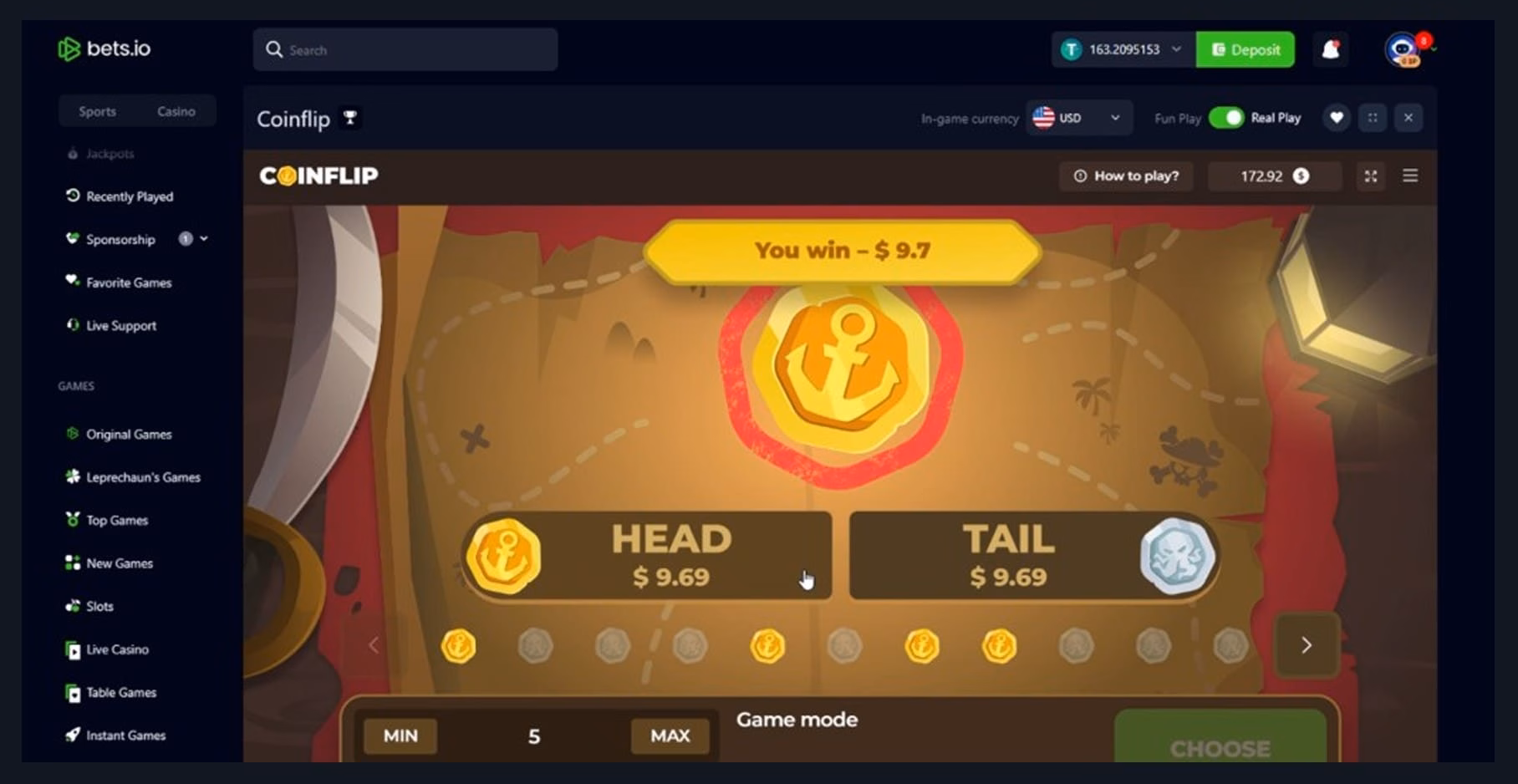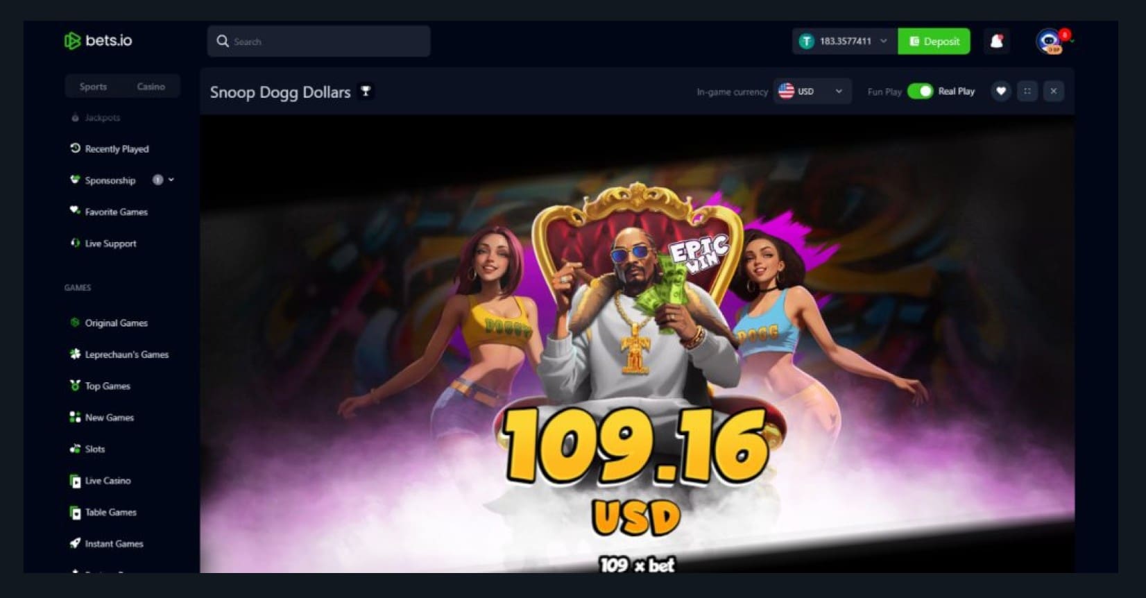 What can I say? Bets looks and feels like most crypto casinos. It’s easy to sign up, manage crypto transactions, and find most things, but it’s not exactly groundbreaking. In terms of organization, it’s great to see instant games and table games get their own categories, but there’s still a lack of search filters.