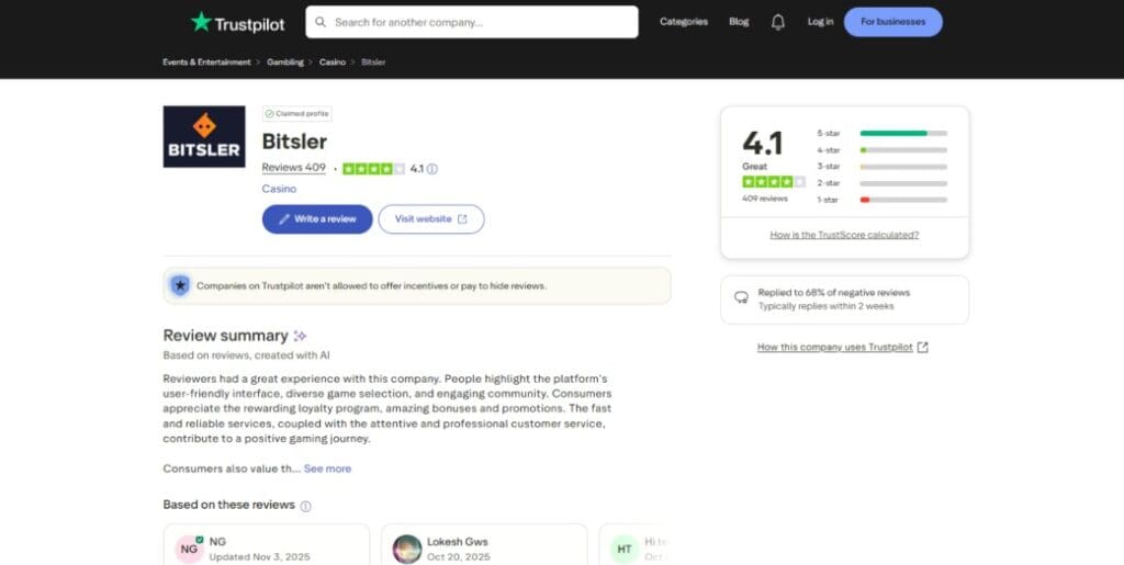 On the whole, most reviews seem fairly positive about Bitsler. However, as always, you should remember that platforms like Casino Guru and AskGamblers are published by casino affiliates. These have a monetary incentive to promote many casino brands, so they will inevitably lack objectivity.