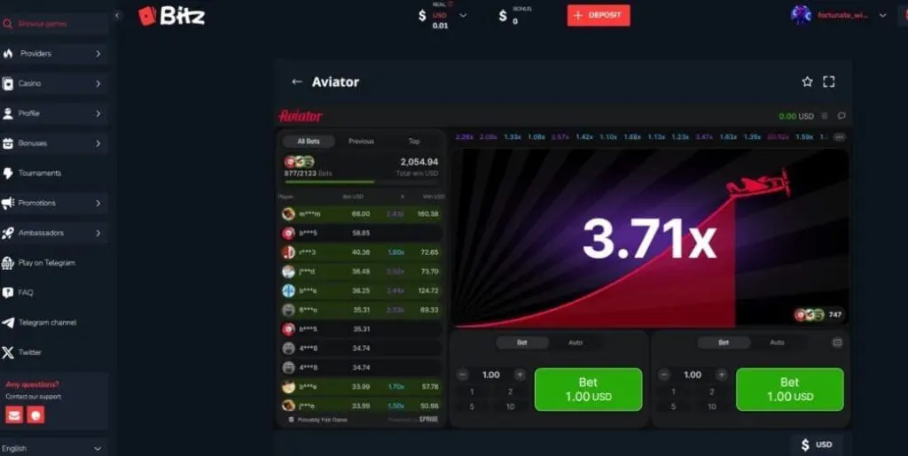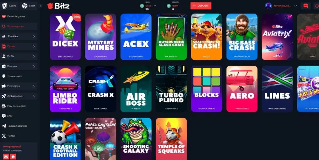 When it comes to provably fair games, the choice at Bitz casino is limited to a handful of titles from third-party providers like Spribe and Turbo Games – found in the Crash category.