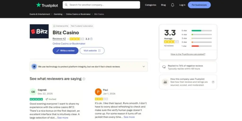 Right, so that’s what Bitz.io casino offers, but what are people saying about it?