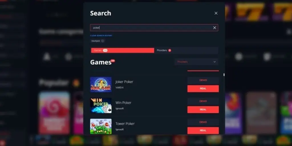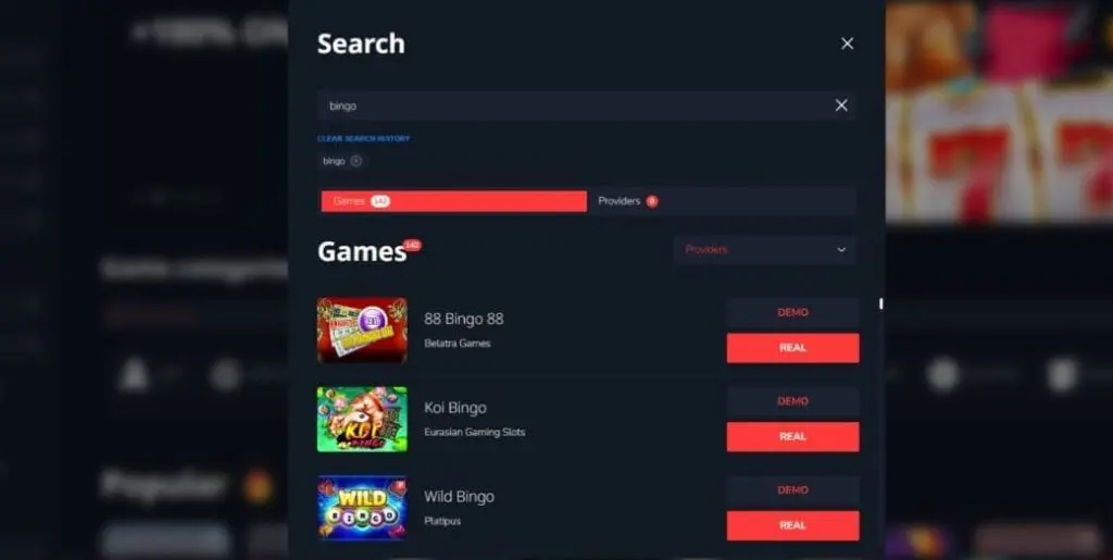 A bingo search also delivered surprising results with 142 games showing up. However, most were miscategorized slots. The actual bingo lineup included 88 Bingo 88 and Koi Bingo from Belatra, Bingo Planets and Bingo Destiny from Platipus, and Rainforest Magic Bingo from Play’n GO.