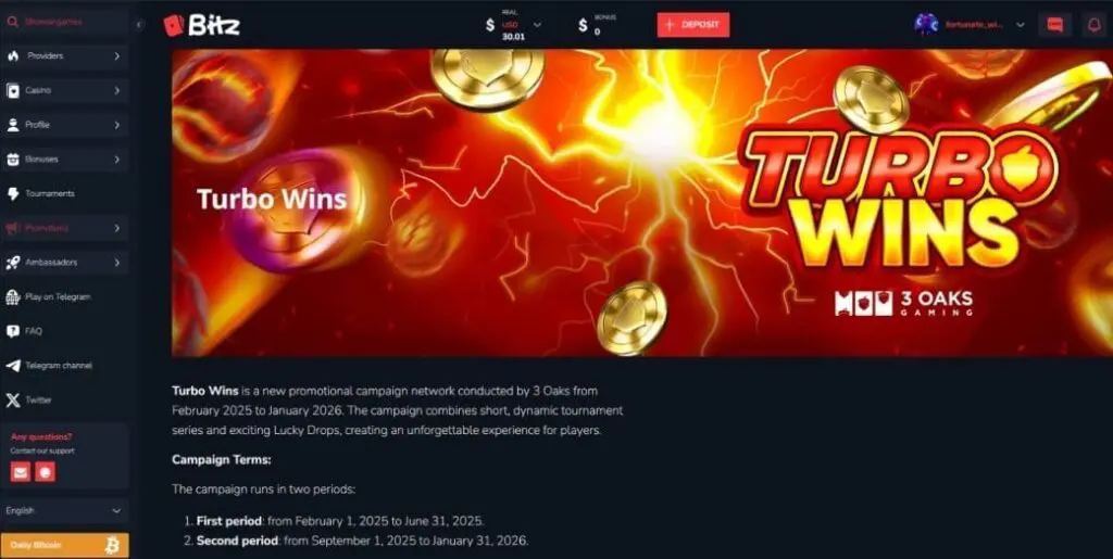At the time of writing this Bitz casino review, other than the welcome bonus, only a couple of promos were running for existing players: