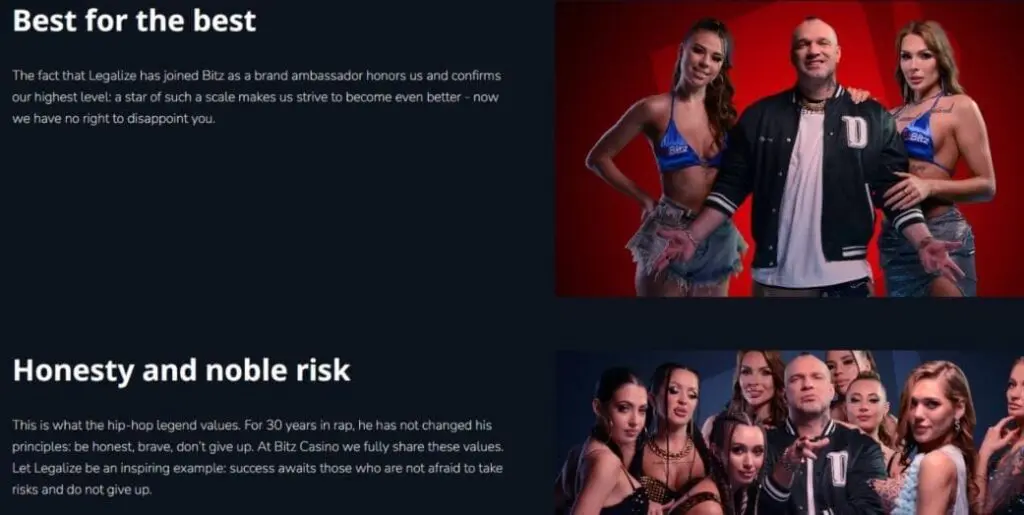 As previously mentioned, the only fiat currency supported by the casino is the Russian Ruble, and the platform’s only brand ambassador is Russian rapper, producer, and author Andrey “Ligalize” Menshikov. In fact, in the blurb about Ligalize, the writer lets slip their real location, saying “Legalize stood at the origins of rap culture in our country.”