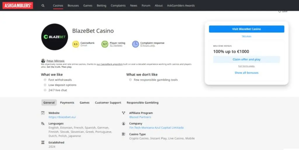 So, we’ve seen what BlazeBet offers, but what kind of reputation does it have? Well, in fairness it’s early days. And, like I always say, you should take reviews with a pinch of salt. Most are either outright fake, or written by less-than-objective affiliates.