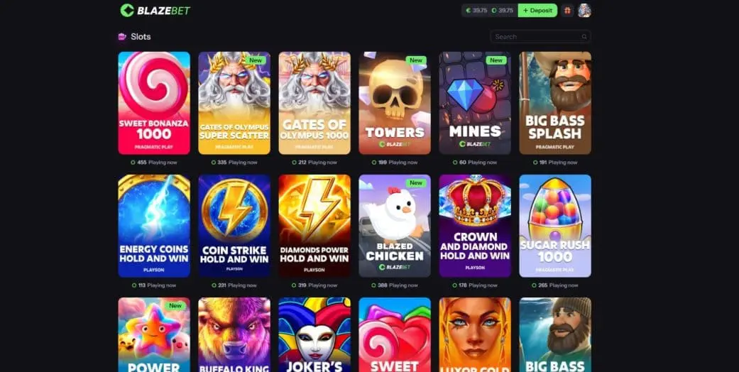 At the time of writing this BlazeBet review, the platform offered around 2,000 casino games, from about 20 providers.