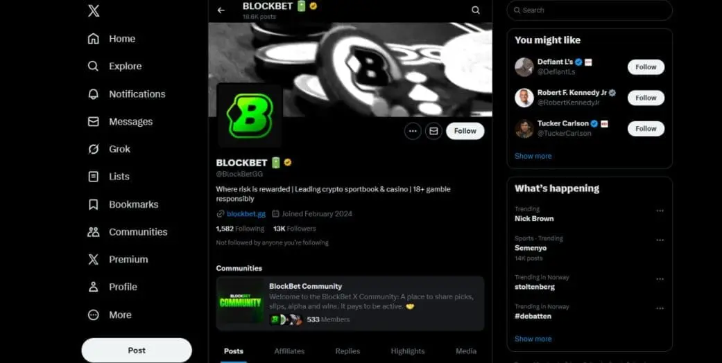 You can also connect with a follow BlockBet on X (Twitter), Telegram, Discord, and Instagram.