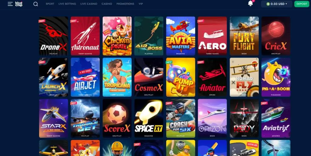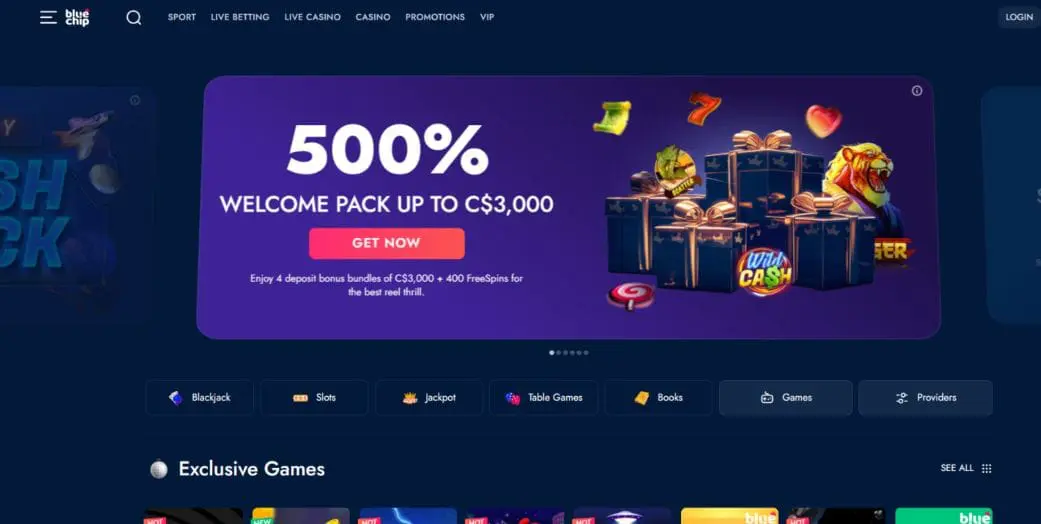 While there are some Bluechip “exclusive games” – branded reskins of existing titles from third-party providers – there aren’t any true Bluechip originals.