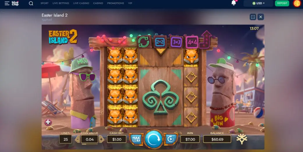 In terms of specs, Easter Island 2 has a medium volatility rating, a max win of 2,500x your bet, and a theoretical RTP of 96%. So, that’s slick graphics, a fun theme, and interesting features. Sounds great, right?
