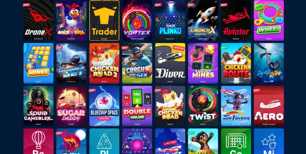 The provably fair games lineup includes everything from Aviator, Keno, Mini Roulette, and Hilo from Spribe, to Trouble Jet, Hungry Frog, and Space Plinko from Veliplay. There’s also a good choice of provably fair titles from Turbo Games, InOut, 100HP, and BGaming, among others.