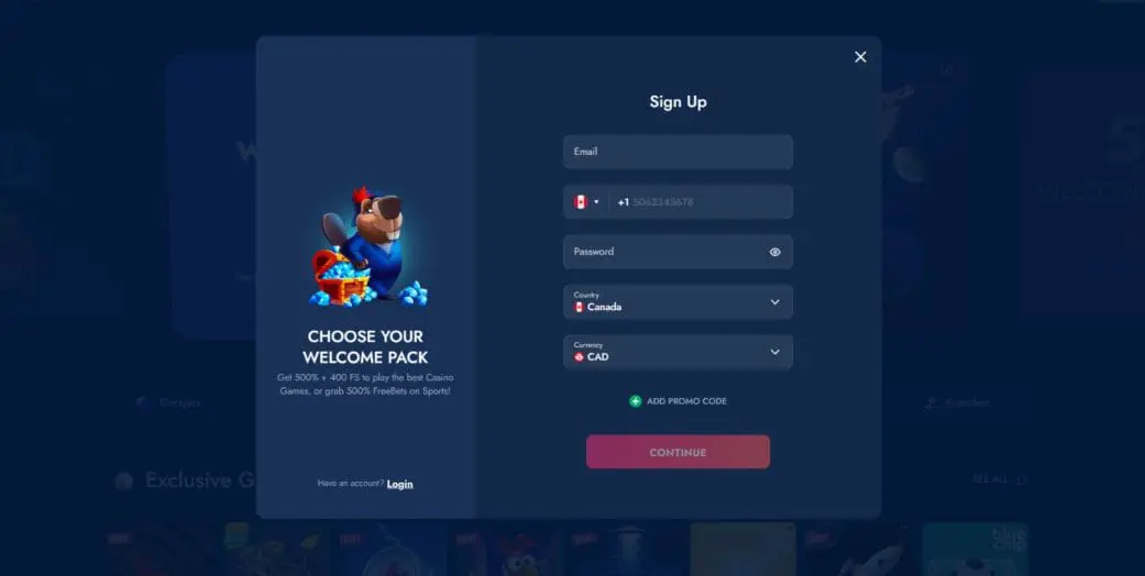 Standard Casino Welcome Pack: 500% up to C$3,000 + 400 Free Spins