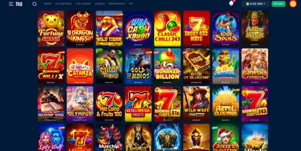 As you’d expect, slots dominate the games portfolio at Blue Chip casino, with almost 3,800 to choose from. Popular slots at the time of writing included Fortune Smash and 9 Dragon Kings from Platipus, Wild Cash x9990 from BGaming, and Classic Chili 243 from 1Spin4Win.