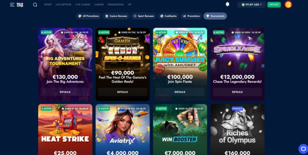 Bluechip Tournaments – Slot tournaments like the Big Adventures Tournament with a €130K prize pool
