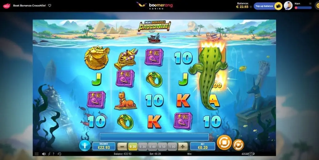 I’m pretty sure we can all agree the word “bonanza” is being used too much in the world of slot games. Even so, Boat Bonanza CrocoNile! from Play’n GO did catch my eye – at the time of creating this Boomerang Casino review it was a new release and was ranking highly.