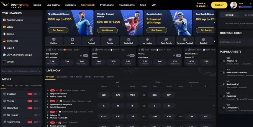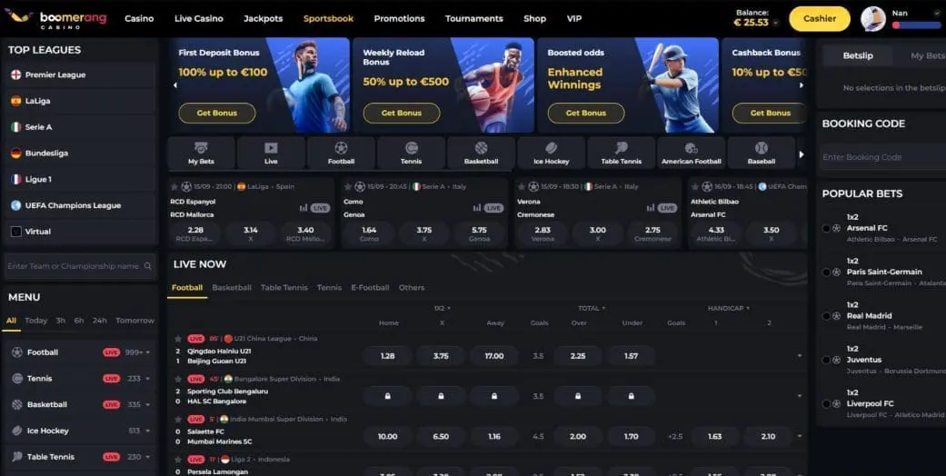 In common with the best crypto casinos, Boomerang-Casino.com also boasts a sportsbook. It offers standard and live sports betting on everything from football and tennis to MMA and motorsports. Esports betting is also available on disciplines like Dota 2, League of Legends, Counter-Strike, and Valorant.
