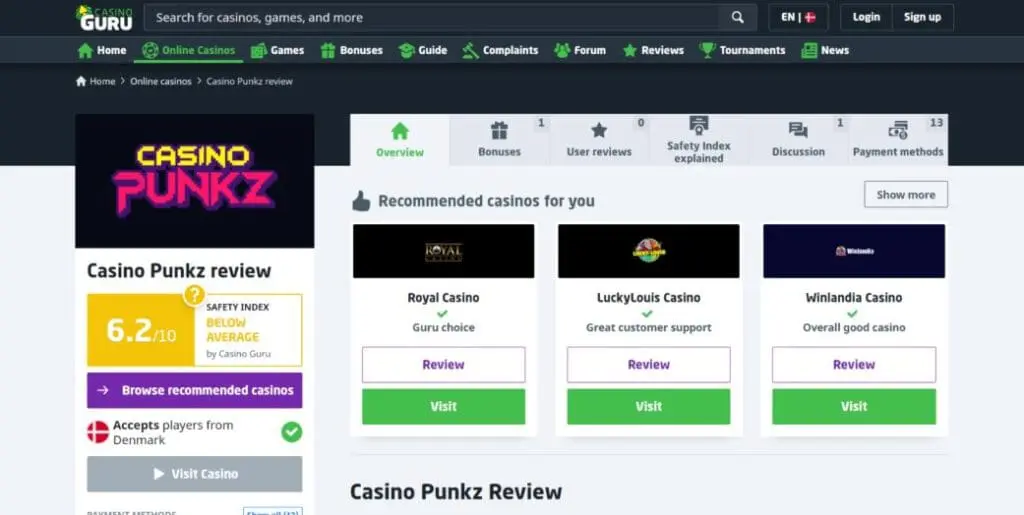 ![]() | CasinoPunkz: 2.1 Poor Punkz: 2.9 Average | Based on 34 reviews Based on 2 reviews |