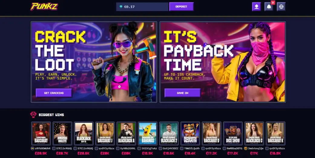 Launched in 2024 as CasinoPunkz.io, by early 2026 this casino had rebranded as Punkz.com. It’s got a distinctive retro digital-inspired theme and bills itself as being KYC-free and VPN-friendly. In terms of product, it offers slots, arcade, table, and live dealer games here, plus sports and esports betting.