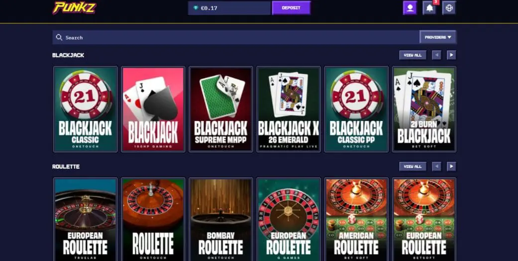 As you’d expect, slots make up the bulk of the Punkz casino game catalog. At the time of writing, the most popular slots included Gates of Olympus Super Scatter from Pragmatic Play, Duck Hunters from Nolimit City, Reactoonz 2 from Play’n GO, andWanted Dead or a Wild from Hacksaw Gaming.