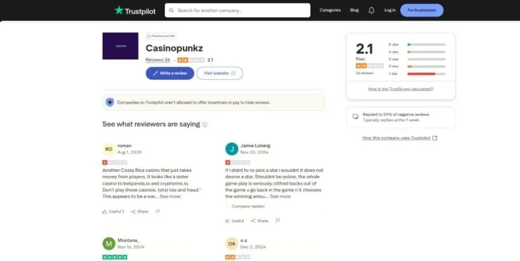 So, that’s what Punkz offers in terms of product, features, and bonuses, but what kind of reputation does it have? Well, in truth, it’s almost impossible to gauge a casino’s reputation these days thanks to all the reputation laundering, fake reviews, and affiliate marketing garbage (that’s why we felt the need to set up CoinBets). But, out of curiosity, here are some ratings at the time of writing: