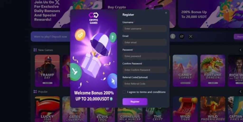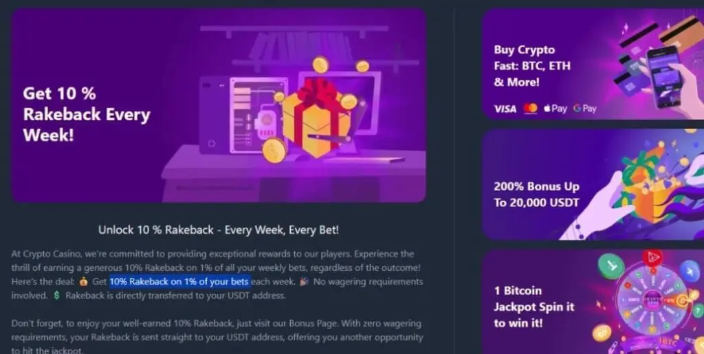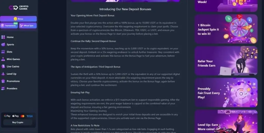 At the time of writing this CryptoGames review, the casino was offering a “200% Bonus up to 20,000 USDT” for new players. But is it really as generous as it sounds?