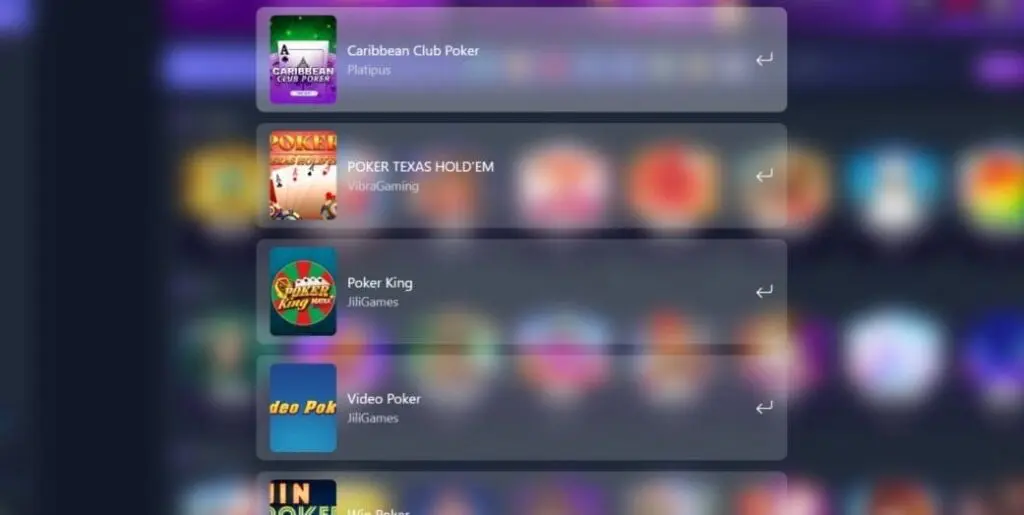 As mentioned, some RNG-based table games at Crypto-Games casino are sprinkled in with the live casino – for example, American Roulette 3D from Evoplay. But to find most, you’ll need to use the search function. This reveals games like Mini Roulette from Platipus and OneTouch, Blackjack Royale from Caleta, and Texas Hold’Em Poker from Vibra Gaming.