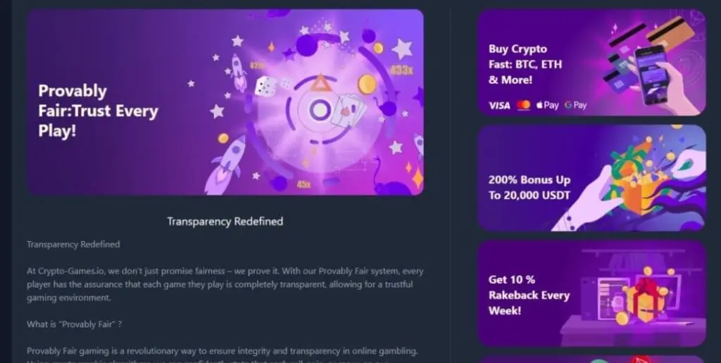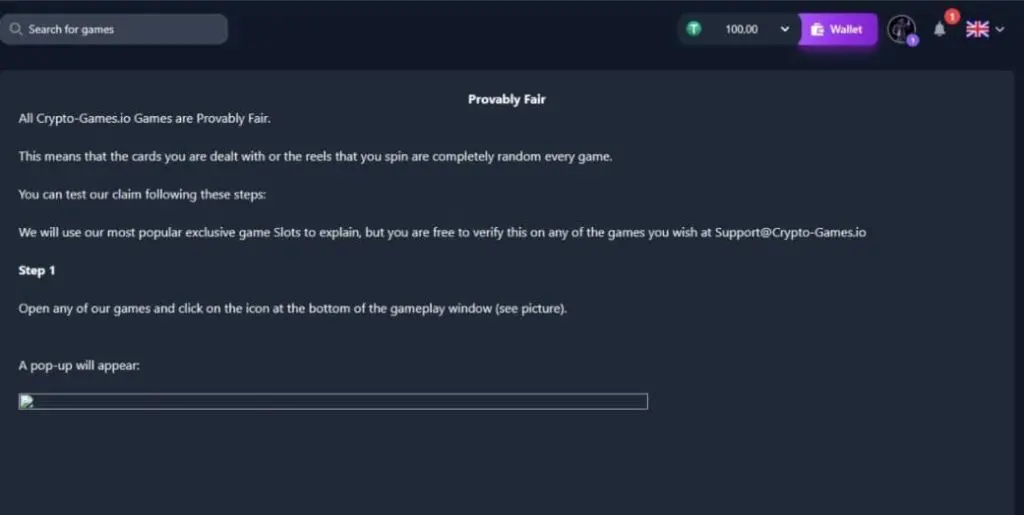 Unfortunately, the way that this casino markets its provably fair credentials is a little misleading. For example, saying “All Crypto-Games.io Games are Provably Fair.” What? No they aren’t. The vast majority aren’t.
