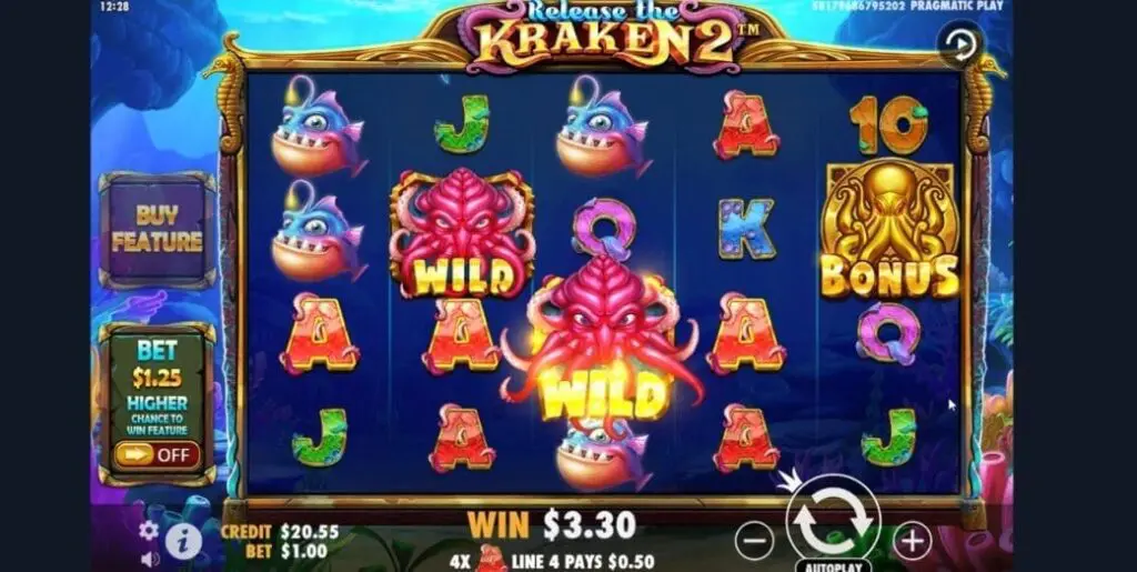 After mulling things over, I decided to play Release the Kraken 2 from Pragmatic Play, and see if I could trigger the free spins bonus game with my remaining funds. I’d bet $1 per spin and keep going as long as I could. Now, anyone who’s played this slot knows that it’s highly volatile, so this was quite the challenge!