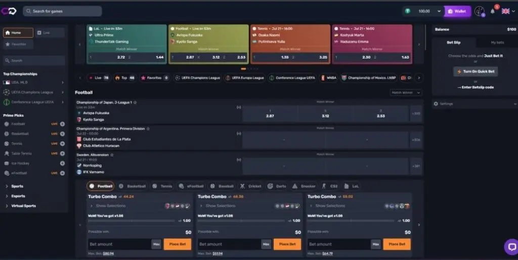 One of the few things Crypto-Games.io does have in common with the best crypto casinos, is also operating a sportsbook. You’ll find standard and live betting for traditional sports like football, basketball, tennis, table tennis, and ice hockey. Plus, esports betting is available on disciplines like CS2, LoL, Dota 2, Valorant, and Rainbow 6.