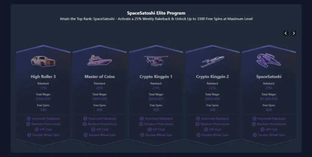 But just for a laugh, let’s take a closer look at the CryptoGames loyalty program… sorry, I mean the “SpaceSatoshi Elite Program.” Oh good grief.
