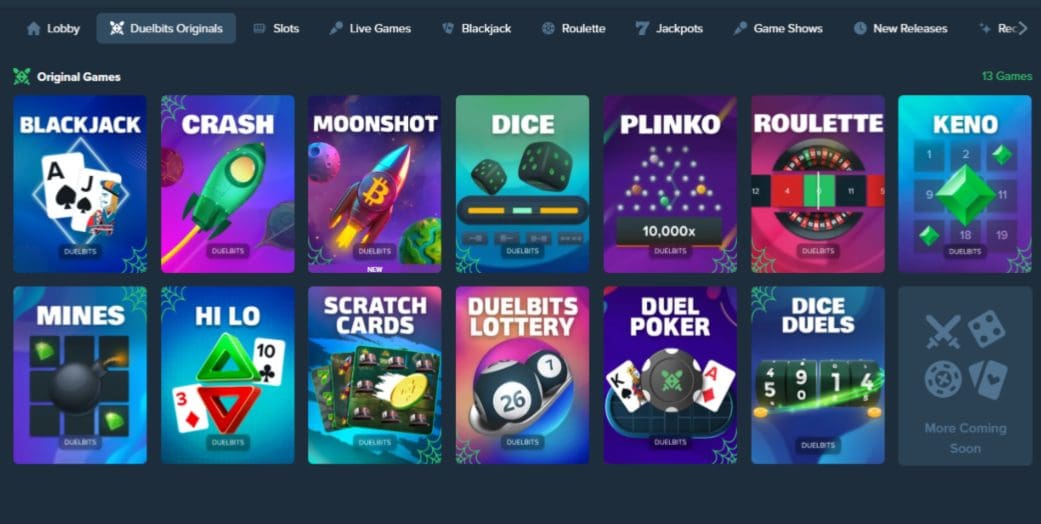 At the time of creating this Duelbits crypto casino review, the platform offered around 5,000 games of all types, from more than 95 providers, plus a handful of in-house originals.