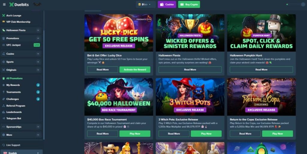 - Halloween Fiesta – Seasonal offers including a $40K Boo Race Halloween Tournament, special Challenges with cash prizes, and a Pumpkin Hunt.