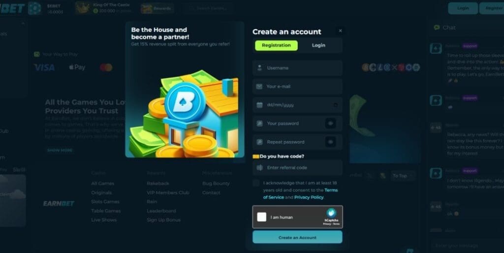 There’s no specific EarnBet.io welcome bonus, but you can start earning cashback and rakeback immediately.