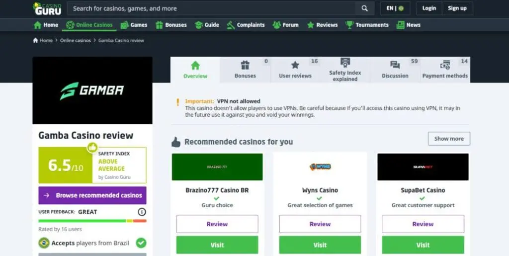 Then we come to the reputation. And this is the most difficult to judge. An Anjouan license is always cause for concern, but Gamba hasn’t really been around long enough to prove itself one way or the other yet — something reflected in the lack of reviews and ratings.